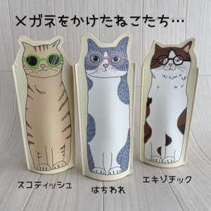 刺繍のメガネをかけた賢そうなねこたち。
